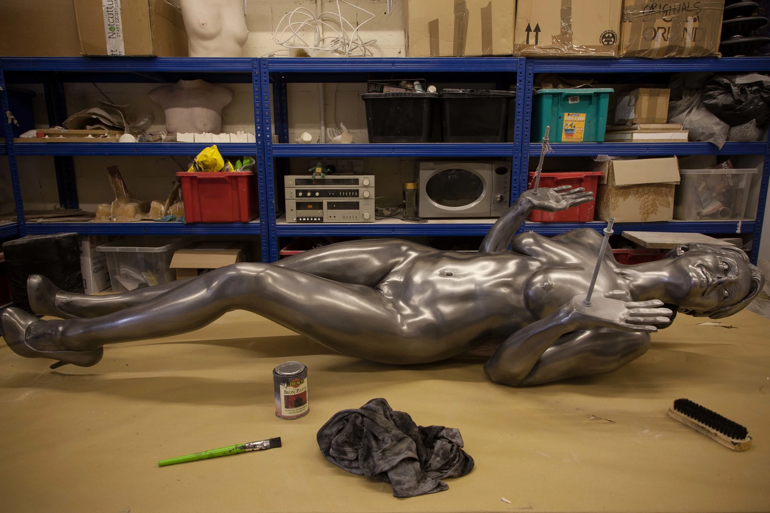 We first set about building a rig for Natasha, due to her pose being a little awkward, it needed to support her enough to make the casting time bearable. It was also an important part of the casting phase, as we needed to take a mould in two parts, front and back, as this allowed us to lean her forward to cast her back without losing the shape of her front. We also added a small wooden wedge under her right foot as the pose meant she would otherwise be standing with her weight on her left foot for a considerable amount of time.