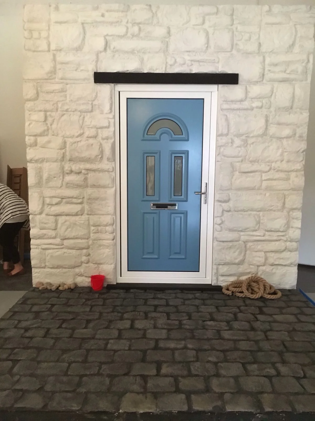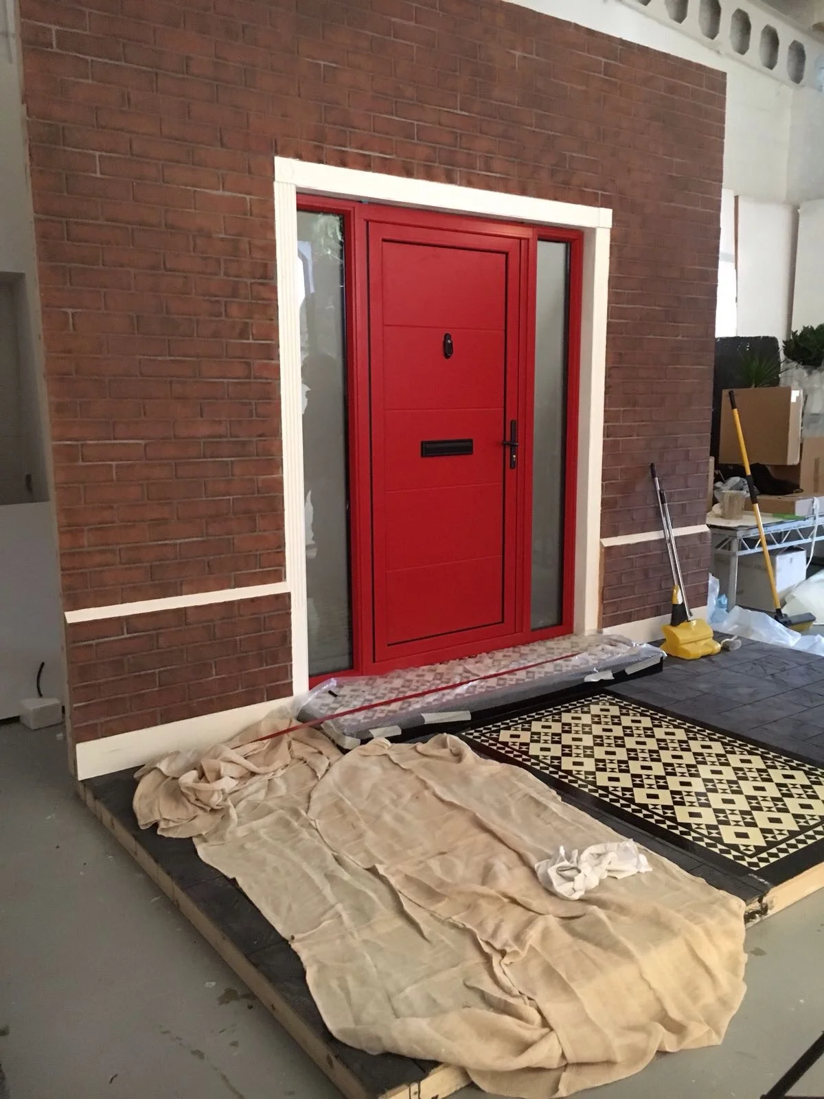 Set Build of four front doors for an advert. Flats built, erected and braced, clad with vac formed brick work and mdf. Detail added and painted to bring to life! Really enjoyed this job, most of all the scenic painting part.